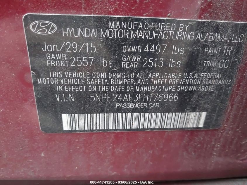Color RedCylinders 4Drive Front wheel driveVIN 5NPE24AF3FH******State Run & Drive VerifiedDamage InsignificantAuction date 2025-03-20 AutoRIA