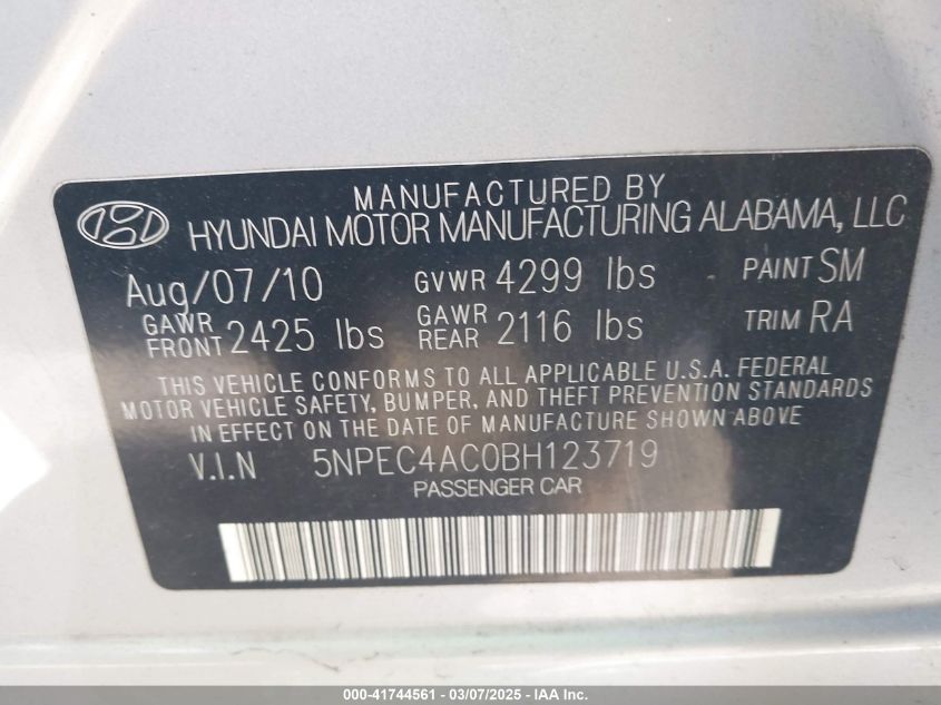Color SilverCylinders 4Drive Front wheel driveVIN 5NPEC4AC0BH******State Run & Drive VerifiedDamage Front right AutoRIA