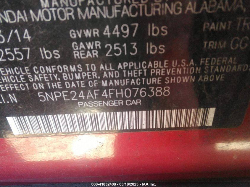 Color RedCylinders 4Drive Front wheel driveVIN 5NPE24AF4FH******State Run & Drive VerifiedDamage Front or back AutoRIA