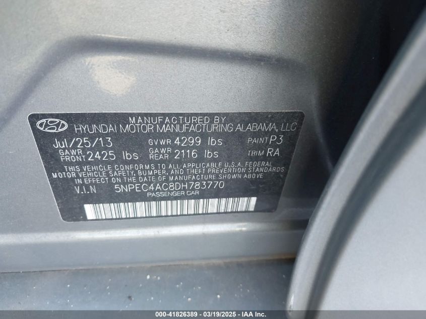 Color GrayCylinders 4Drive Front wheel driveVIN 5NPEC4AC8DH******State Run & Drive VerifiedDamage Front or back AutoRIA