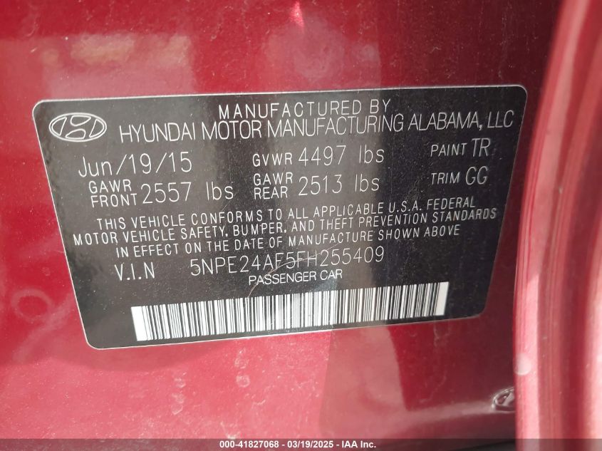 2015 HYUNDAI SONATA 2015 Gasoline, 2.4, Front wheel drive, VIN - 5NPE24AF5FH****** from the USA