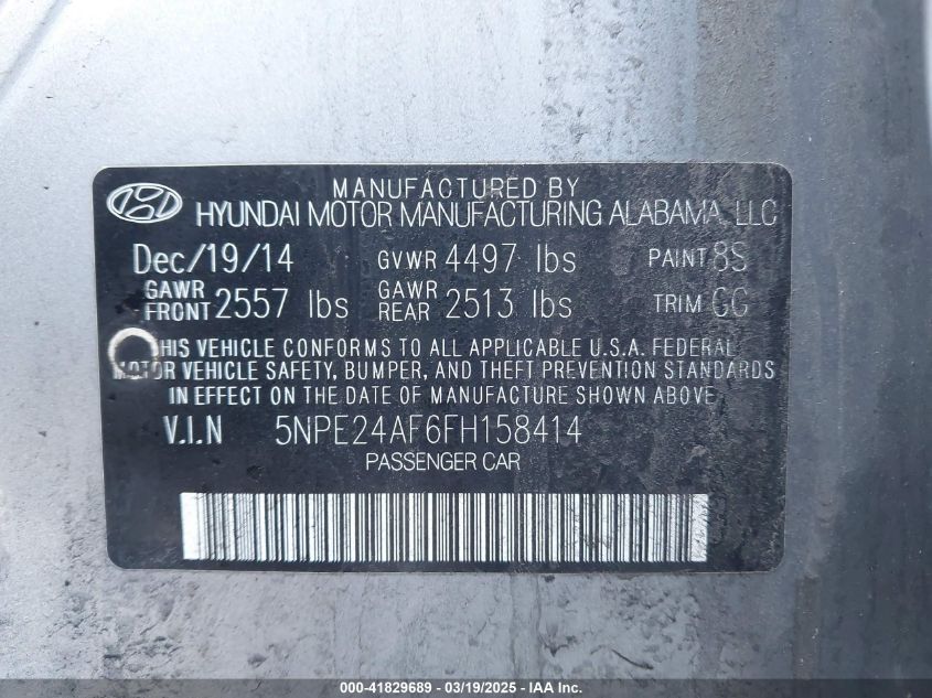 2015 HYUNDAI SONATA 2015 Gasoline, 2.4, Front wheel drive, VIN - 5NPE24AF6FH****** from the USA