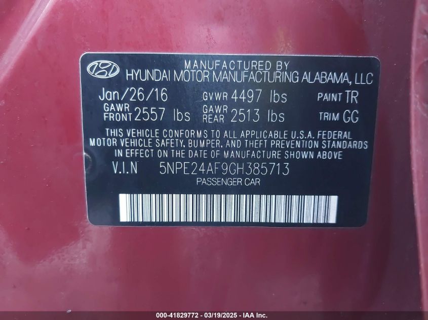 2016 HYUNDAI SONATA 2016 Gasoline, 2.4, Front wheel drive, VIN - 5NPE24AF9GH****** from the USA