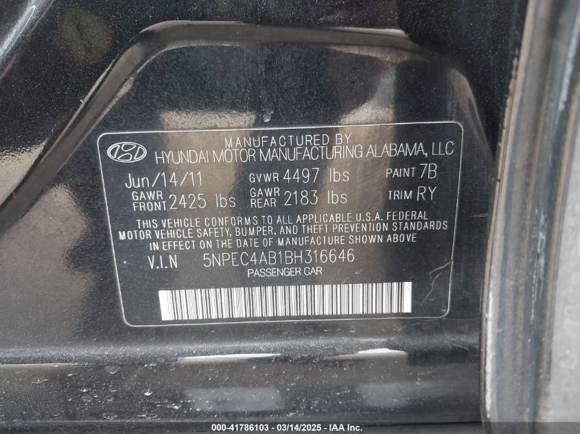 Color BlackCylinders 4Drive Front wheel driveVIN 5NPEC4AB1BH******State Run & Drive VerifiedDamage Front or backAuction date 2025-03-25 AutoRIA