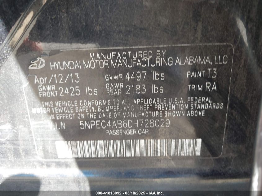 2013 HYUNDAI SONATA 2013 Gasoline, 2.0, Front wheel drive, VIN - 5NPEC4AB6DH****** from the USA