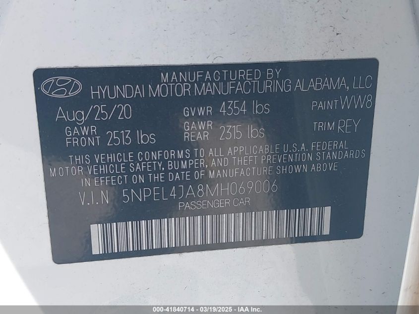 2021 HYUNDAI SONATA 2021 Gasoline, 2.5, Front wheel drive, VIN - 5NPEL4JA8MH****** from the USA