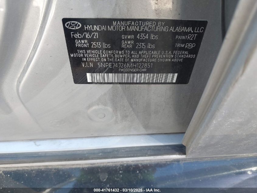 2021 HYUNDAI SONATA 2021 Gasoline, 1.6, Front wheel drive, VIN - 5NPEJ4J26MH****** from the USA