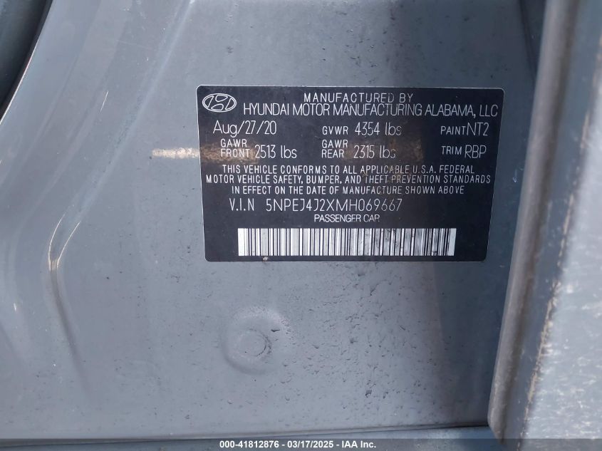 2021 HYUNDAI SONATA 2021 Gasoline, 1.6, Front wheel drive, VIN - 5NPEJ4J2XMH****** from the USA