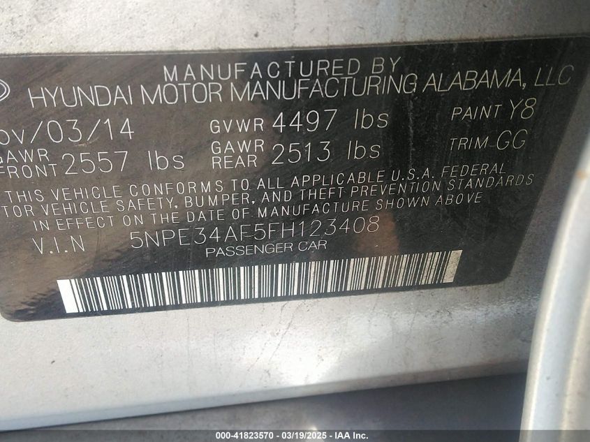 Color SilverCylinders 4Drive Front wheel driveVIN 5NPE34AF5FH******State Run & Drive VerifiedDamage Front right AutoRIA