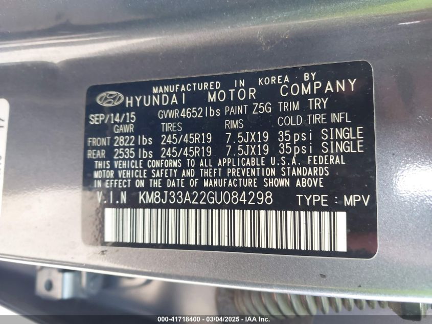 2016 HYUNDAI TUCSON 2016 Gasoline, 1.6, Front wheel drive, VIN - KM8J33A22GU****** from the USA