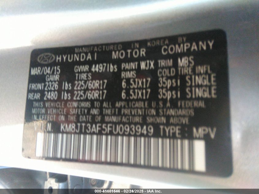 2015 HYUNDAI TUCSON 2015 Gasoline, 2.0, Front wheel drive, VIN - KM8JT3AF5FU****** from the USA