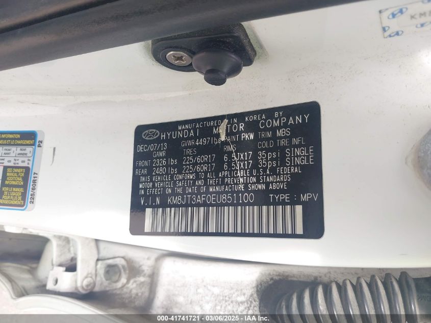 2014 HYUNDAI TUCSON 2014 Gasoline, 2.0, Front wheel drive, VIN - KM8JT3AF0EU****** from the USA