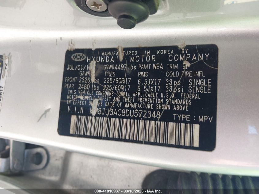 Color SilverCylinders 4Drive Front wheel driveVIN KM8JU3AC8DU******State Run & Drive VerifiedDamage InsignificantAuction date 2025-03-20 AutoRIA