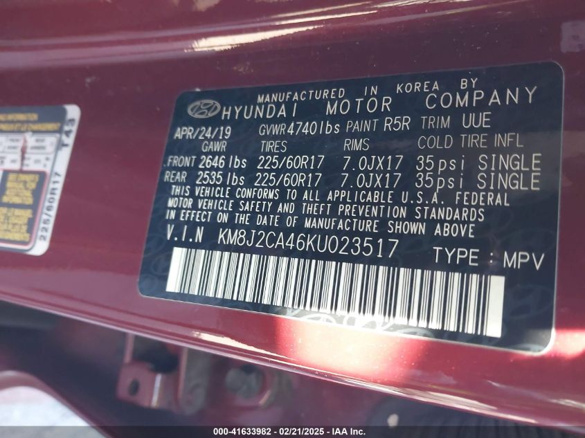 2019 HYUNDAI TUCSON 2019 Gasoline, 2.0, Full drive, VIN - KM8J2CA46KU****** from the USA