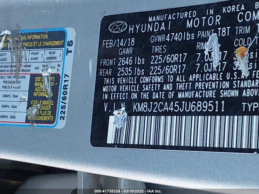 Color SilverCylinders 4Drive Full driveVIN KM8J2CA45JU******State Run & Drive VerifiedDamage Front right AutoRIA