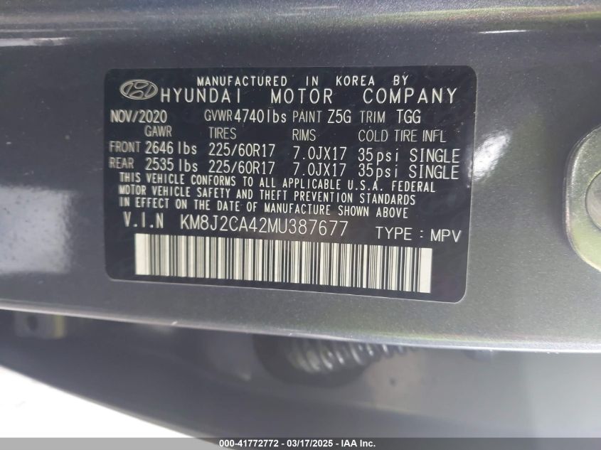 2021 HYUNDAI TUCSON 2021 Gasoline, 2.0, Full drive, VIN - KM8J2CA42MU****** from the USA