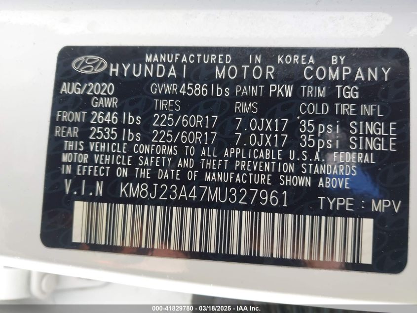 2021 HYUNDAI TUCSON 2021 Gasoline, 2.0, Front wheel drive, VIN - KM8J23A47MU****** from the USA