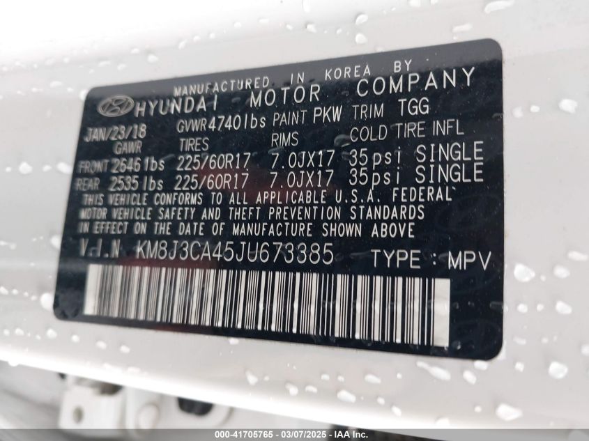 2018 HYUNDAI TUCSON 2018 Gasoline, 2.0, Full drive, VIN - KM8J3CA45JU****** from the USA