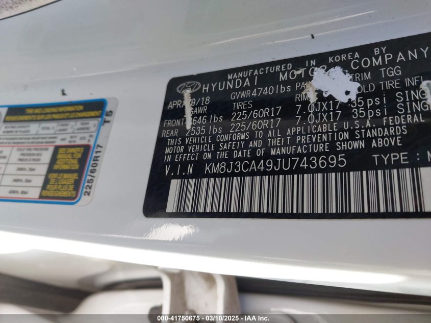 Color WhiteCylinders 4Drive Full driveVIN KM8J3CA49JU******State Run & Drive VerifiedDamage Front or back AutoRIA