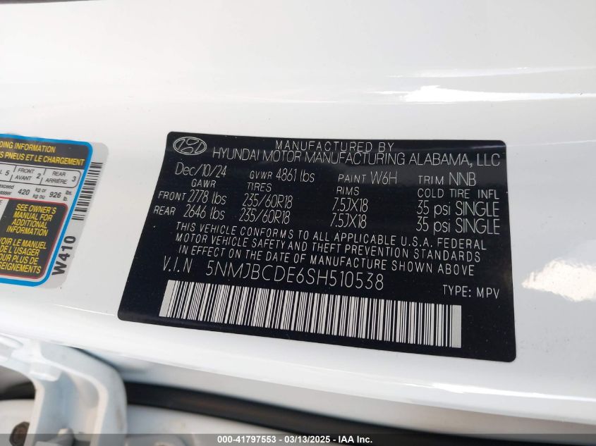 Color WhiteCylinders 4Drive Full driveVIN 5NMJBCDE6SH******State Run & Drive VerifiedDamage All over the car