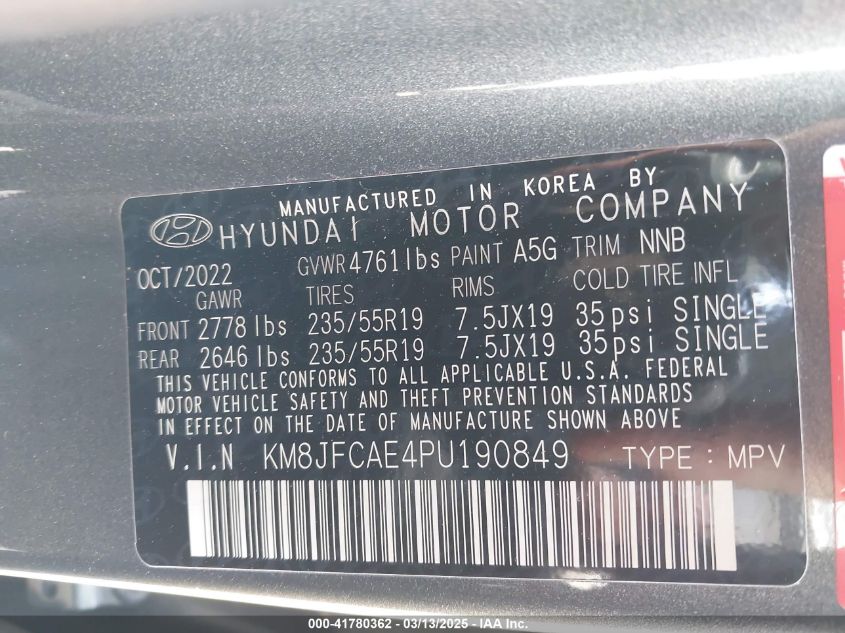 Color GrayCylinders 4Drive Full driveVIN KM8JFCAE4PU******State Run & Drive VerifiedDamage Front or back AutoRIA