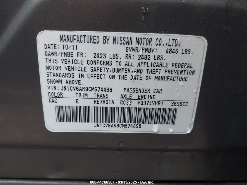 Color GrayCylinders 6Drive Full driveVIN JN1CV6AR9CM******State Run & Drive VerifiedDamage Front or back AutoRIA