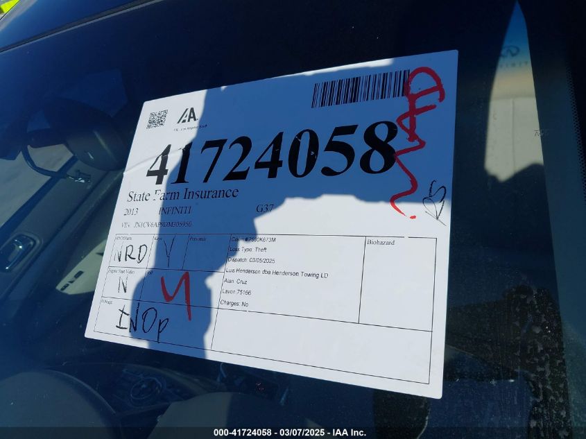 2013 INFINITI G37 2013 Gasoline, 3.7, Rear wheel drive, VIN - JN1CV6AP9DM****** from the USA