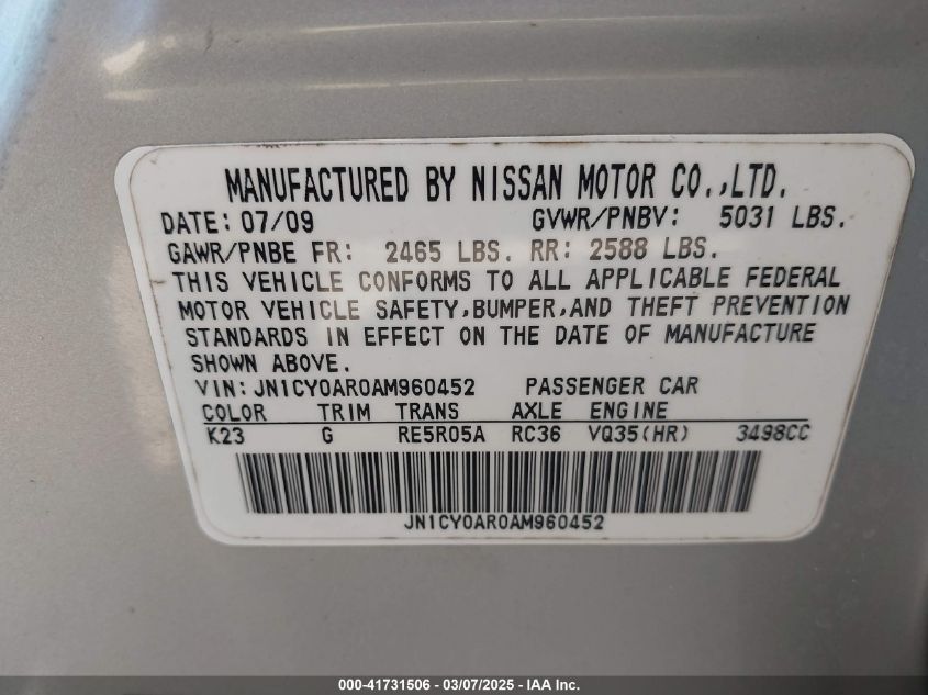 2010 INFINITI M35 2010 Gasoline, 3.5, Full drive, VIN - JN1CY0AR0AM****** from the USA
