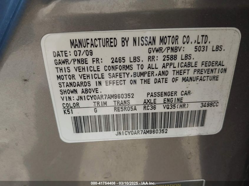 2010 INFINITI M35 2010 Gasoline, 3.5, Full drive, VIN - JN1CY0AR7AM****** from the USA