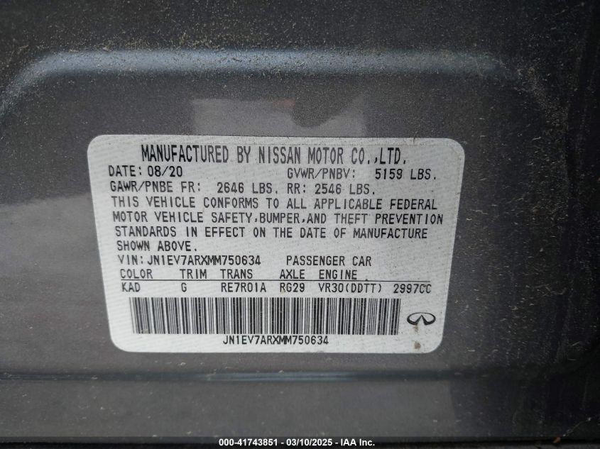 2021 INFINITI Q50 2021 Gasoline, 3.0, Full drive, VIN - JN1EV7ARXMM****** from the USA
