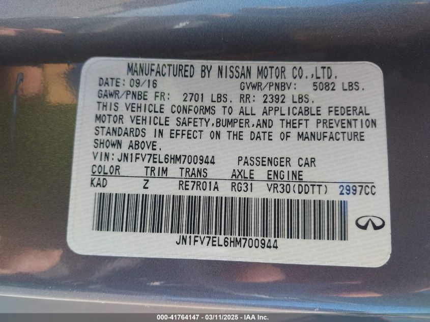 2017 INFINITI Q60 2017 Gasoline, 3.0, Full drive, VIN - JN1FV7EL6HM****** from the USA