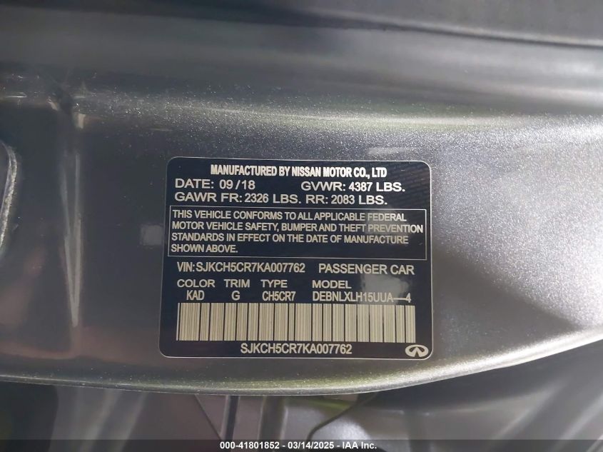 2019 INFINITI QX30 2019 Gasoline, 2.0, Full drive, VIN - SJKCH5CR7KA****** from the USA