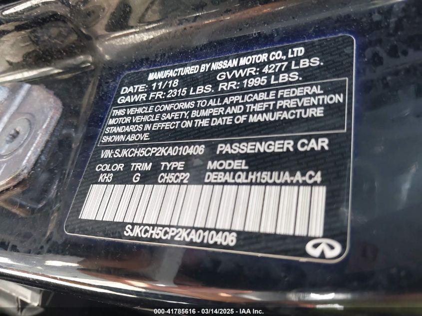 Color BlackCylinders 4Drive Front wheel driveVIN SJKCH5CP2KA******State Run & Drive VerifiedDamage Front right