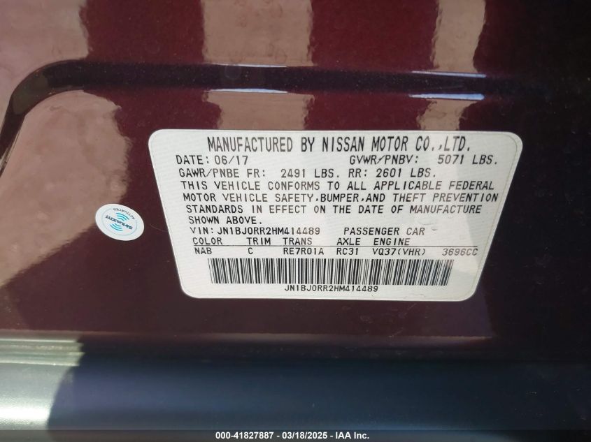 Color BurgundyCylinders 6Drive Full driveVIN JN1BJ0RR2HM******State Run & Drive VerifiedDamage Rear right AutoRIA