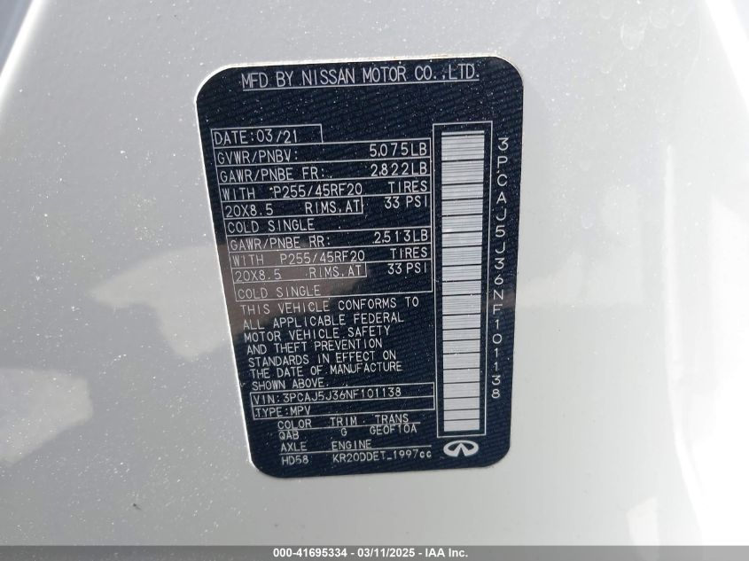 2022 INFINITI QX55 2022 Gasoline, 2.0, Full drive, VIN - 3PCAJ5J36NF****** from the USA
