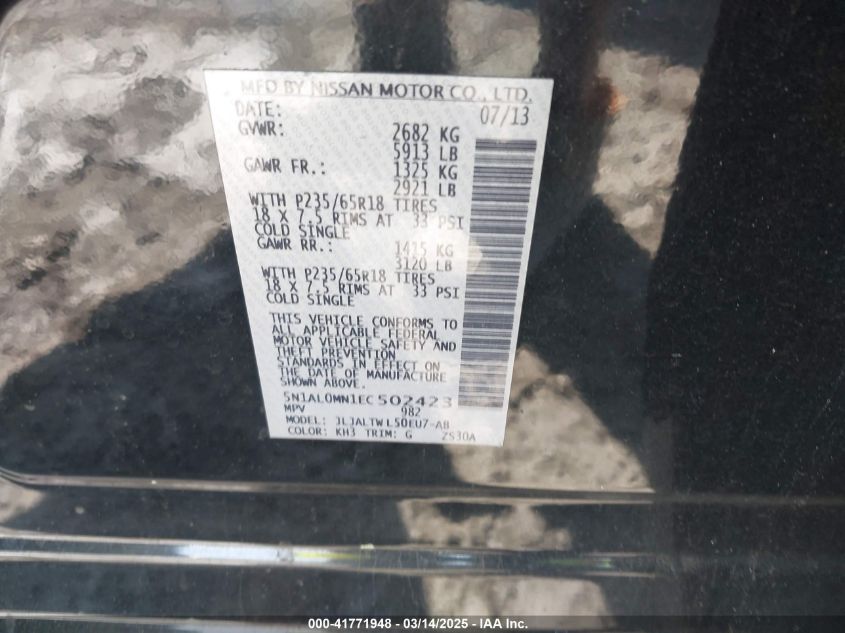 Color BlackCylinders 6Drive Front wheel driveVIN 5N1AL0MN1EC******State Run & Drive VerifiedDamage Front or back AutoRIA