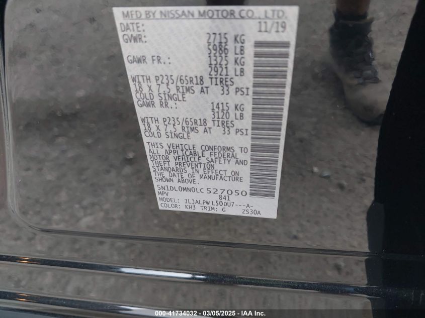Color BlackCylinders 6Drive Front wheel driveVIN 5N1DL0MN0LC******State Run & Drive VerifiedDamage Right side AutoRIA