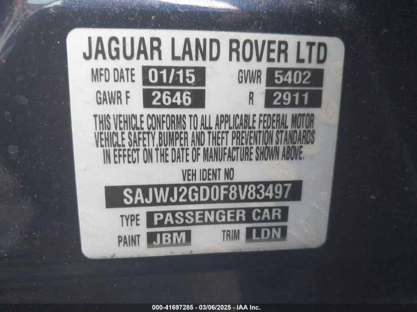 2015 JAGUAR XJ 2015 Gasoline, 3.0, Full drive, VIN - SAJWJ2GD0F8****** from the USA