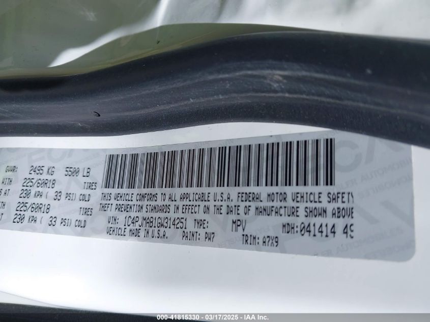 Color WhiteCylinders 4Drive Full driveVIN 1C4PJMAB1GW******State Run & Drive VerifiedDamage Rear left AutoRIA