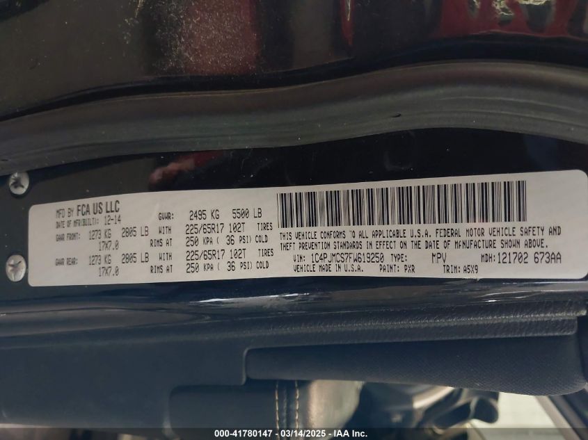 2015 JEEP CHEROKEE 2015 Gasoline, 3.2, Full drive, VIN - 1C4PJMCS7FW****** from the USA