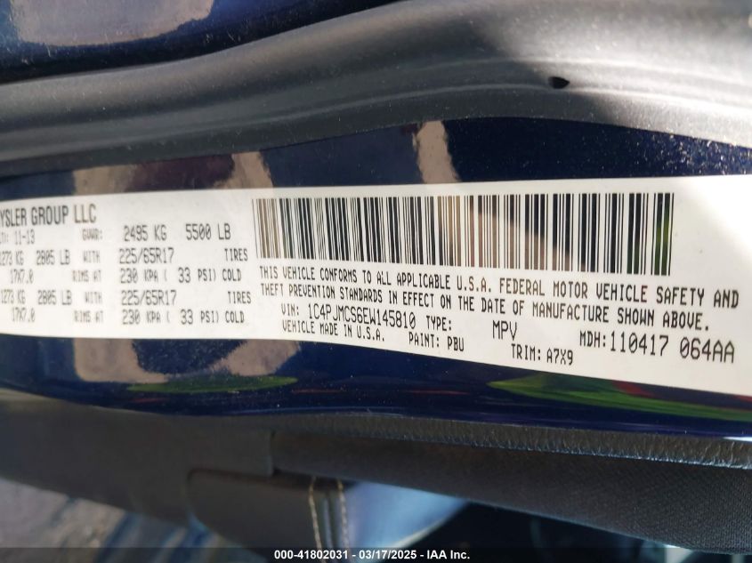 2014 JEEP CHEROKEE 2014 Gasoline, 3.2, Full drive, VIN - 1C4PJMCS6EW****** from the USA