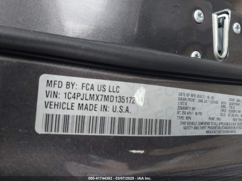 2021 JEEP CHEROKEE 2021 Gasoline, 3.2, Front wheel drive, VIN - 1C4PJLMX7MD****** from the USA