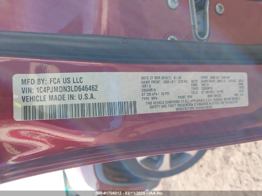 Color BurgundyCylinders 4Drive Full driveVIN 1C4PJMDN3LD******State Run & Drive VerifiedDamage Water AutoRIA