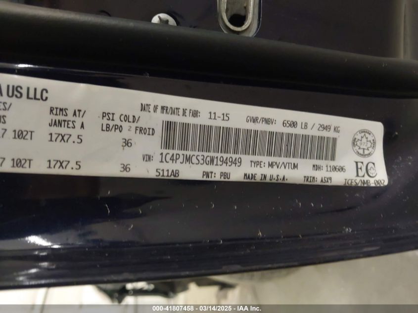 Color BlueCylinders 6Drive Full driveVIN 1C4PJMCS3GW******State Run & Drive VerifiedDamage Front or back AutoRIA