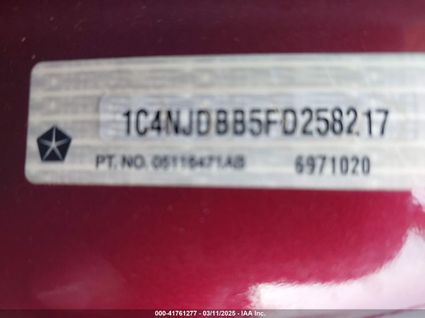 Color RedCylinders 4Drive Full driveVIN 1C4NJDBB5FD******State Run & Drive VerifiedDamage Front left AutoRIA