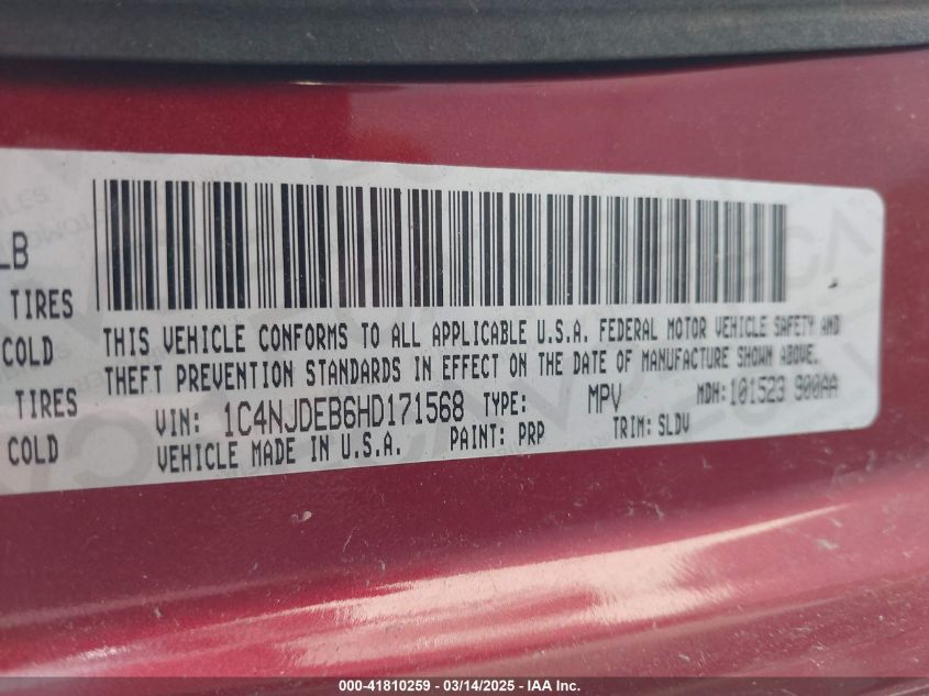 2017 JEEP COMPASS 2017 Gasoline, 2.4, Full drive, VIN - 1C4NJDEB6HD****** from the USA