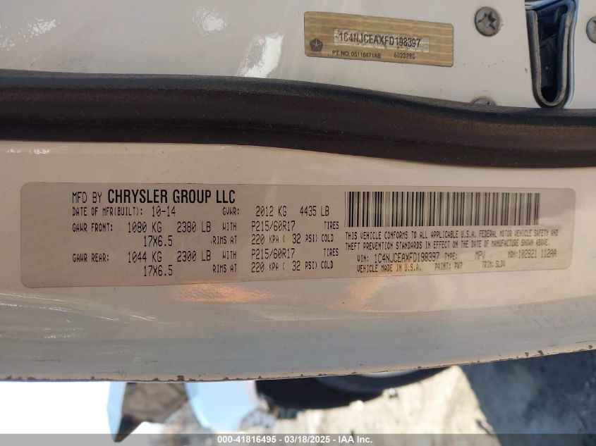 Color WhiteCylinders 4Drive Front wheel driveVIN 1C4NJCEAXFD******State Run & Drive VerifiedDamage Front and back AutoRIA