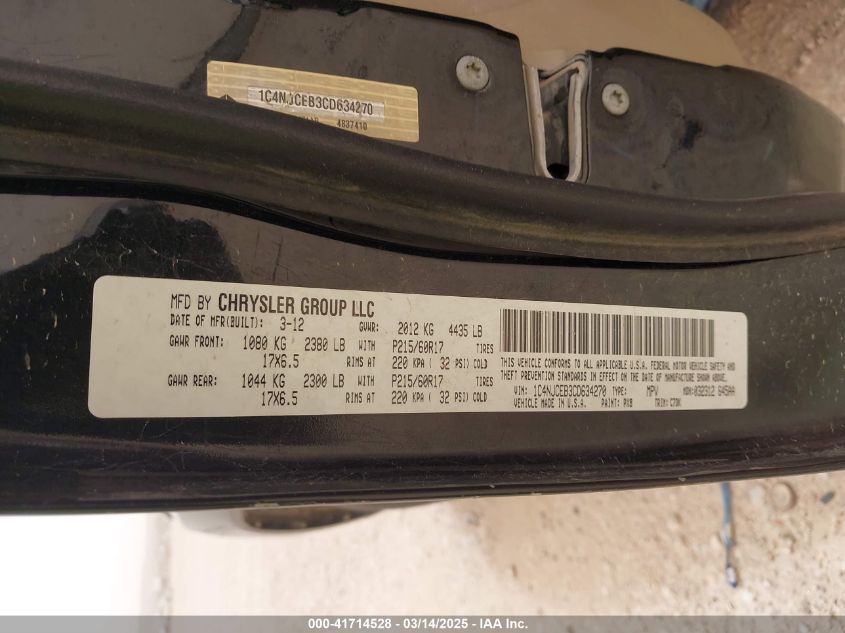 Color BlackCylinders 4Drive Front wheel driveVIN 1C4NJCEB3CD******State Run & Drive VerifiedDamage Front leftAuction date 2025-03-20 AutoRIA