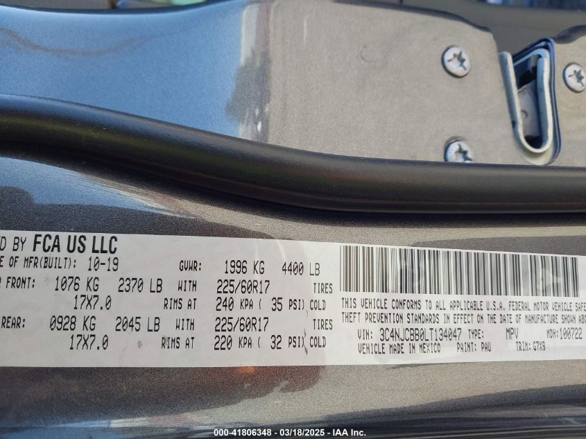 Color GrayCylinders 4Drive Front wheel driveVIN 3C4NJCBB0LT******State Run & Drive VerifiedDamage Front or back AutoRIA