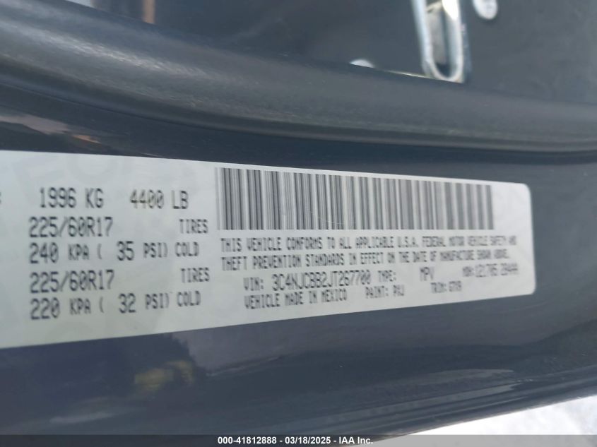 Color BlackCylinders 4Drive Front wheel driveVIN 3C4NJCBB2JT******State Run & Drive VerifiedDamage Back AutoRIA